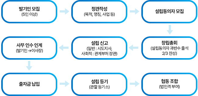설립 | 시도지사 신고 | 기획재정부 인가 |