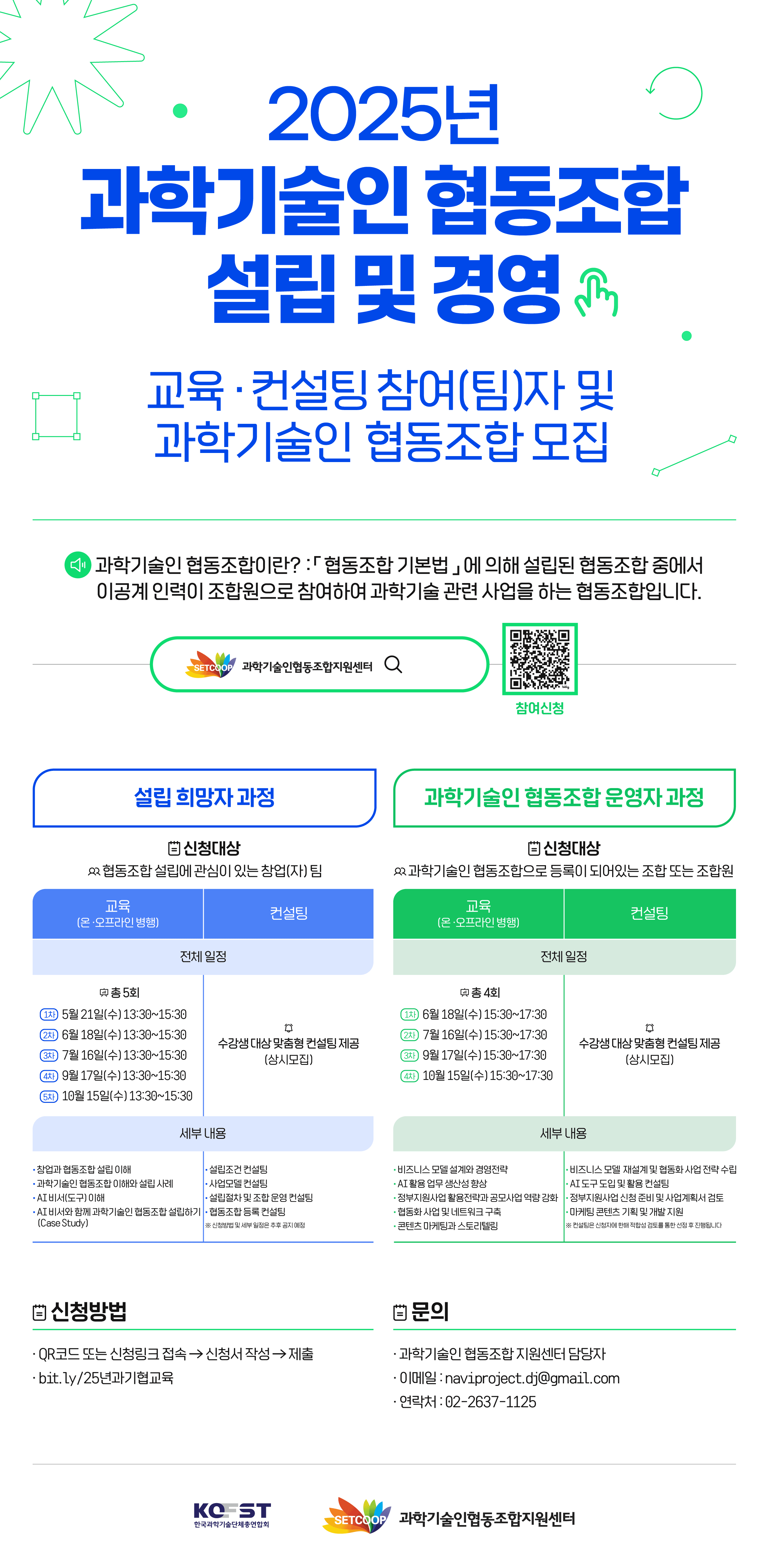 ● 진행일정 : 포스터 및 과학기술인협동조합 홈페이지 참고